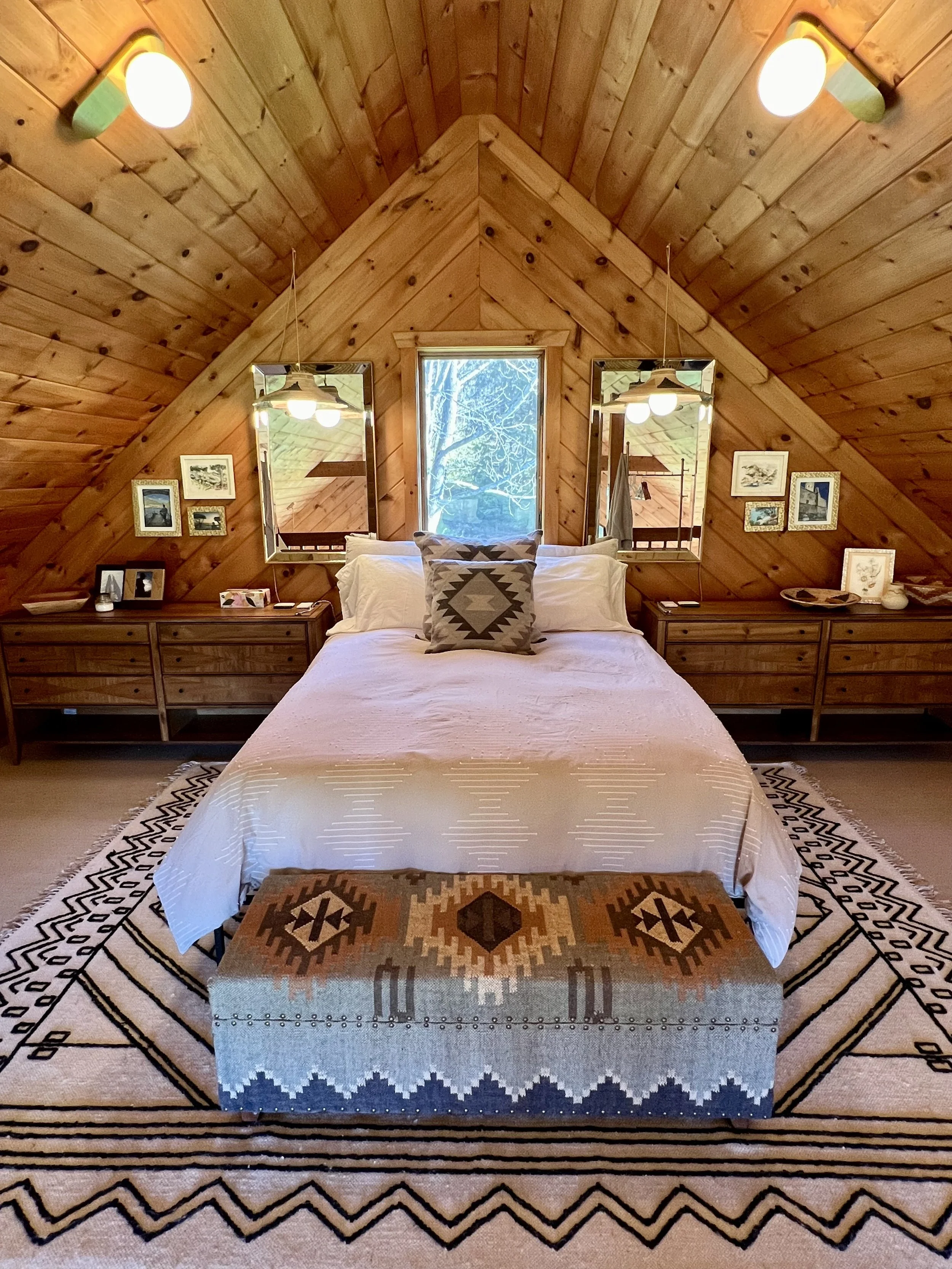 A knotty wood catskill cabin with mid-century vibes