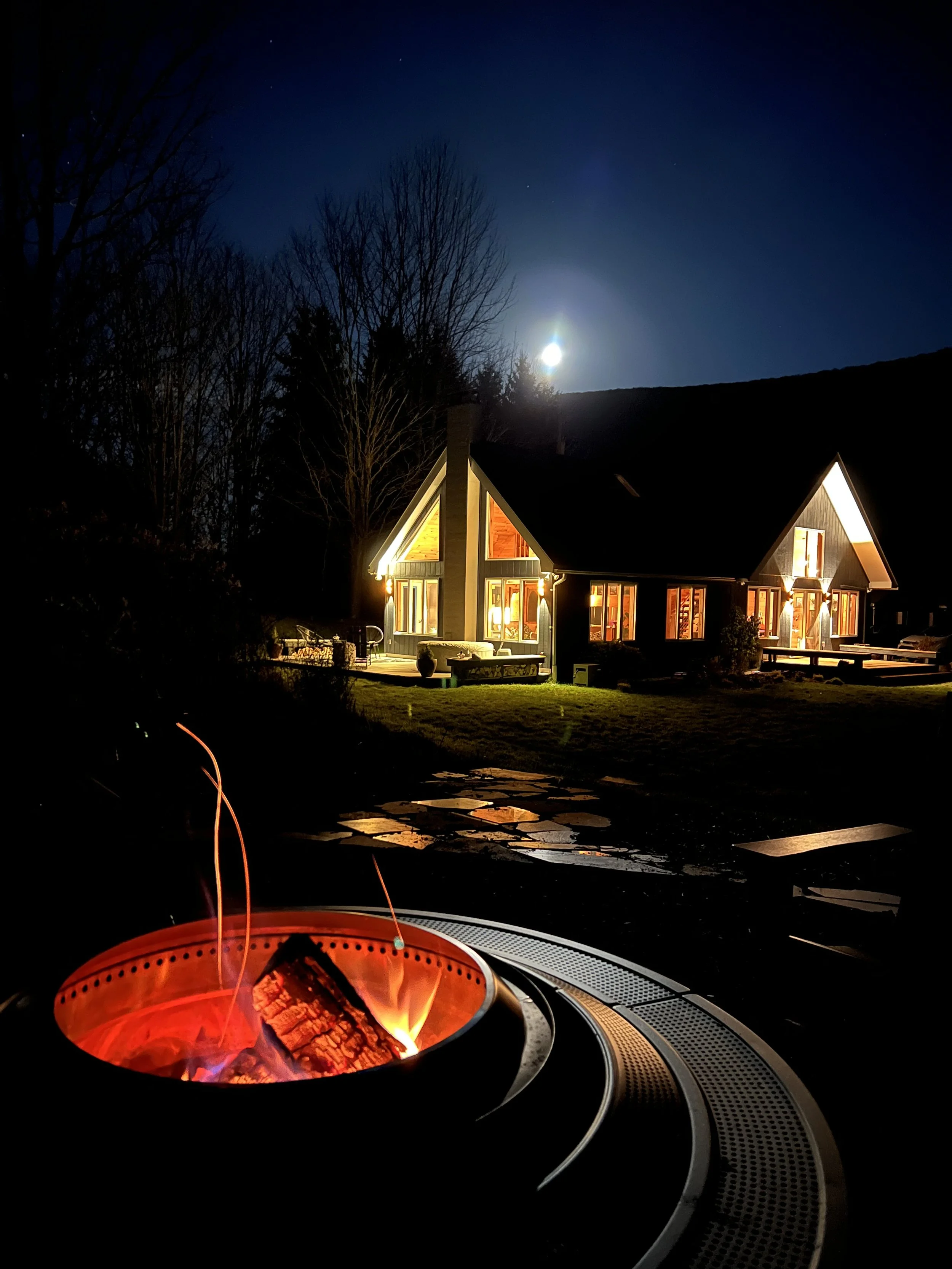 We have seven piece Adirondack chair set up on the hill side for you to enjoy a fire at sunset or by moonlight.